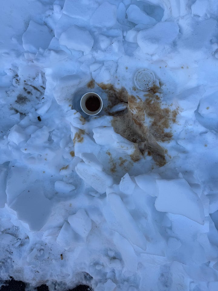 A snow stain, if nothing is done to remove it, will only get worse. One color, two color, three color four, each layer packing on top of the last until it’s all compressed into a block of gray packed ice and you can’t untangle any of it. Have to wait until the sun comes out to fix that one.